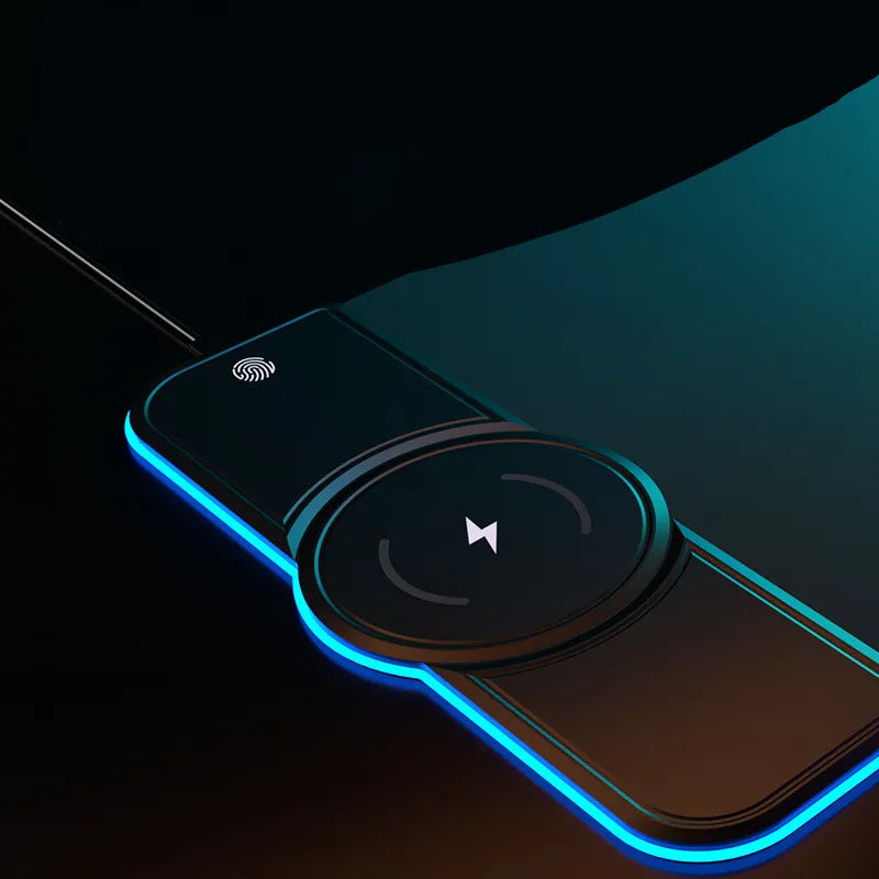 Stilvolles Mousepad mit kabelloser Ladefunktion und lebendiger RGB-Beleuchtung. Perfekt für Gaming, Büro und kreatives Arbeiten – Komfort und Funktion in einem!