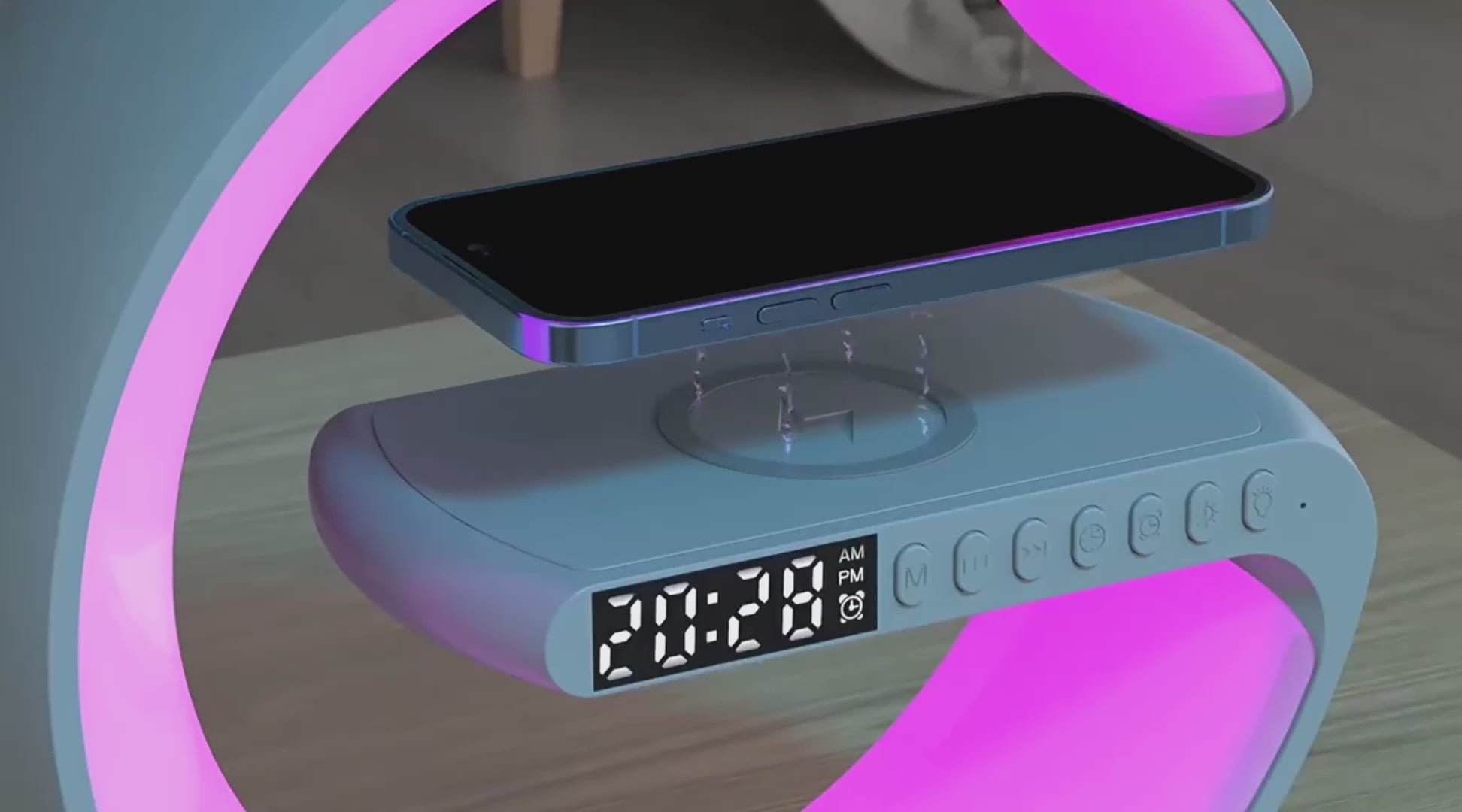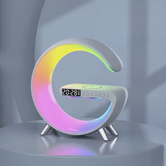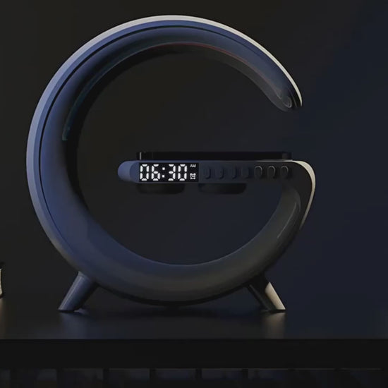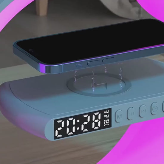 Multifunktionale Wireless Charging Station – Wecker, Lautsprecher & Nachtlicht